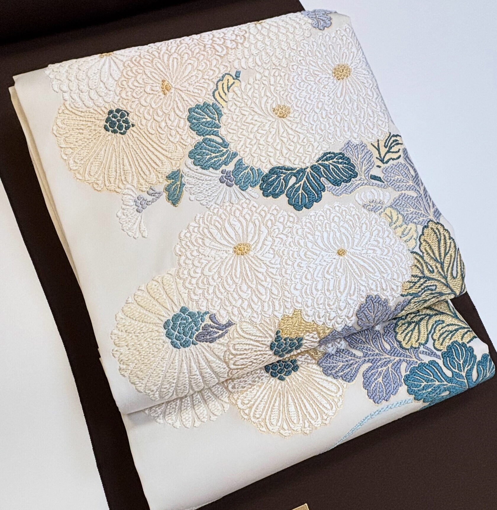 ![]() 焦げ茶地 金彩琳派模様 付下げ 白地 菊花文 袋帯 |